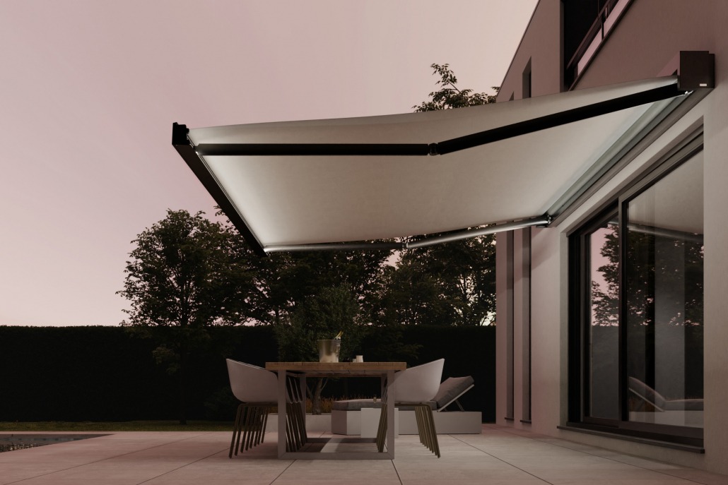 De LED verlichting is dimbaar en kan zowel in de armen als in kast en voorlijst gemonteerd worden. Hierdoor ontstaat een indirecte verlichting van het terras.